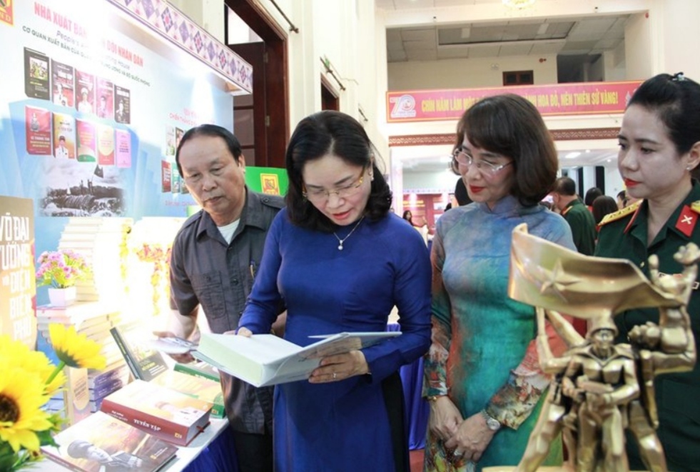 Trong khuôn khổ các hoạt động của Liên hoan cán bộ thư viện tuyên truyền phát triển văn hóa đọc và giới thiệu sách năm 2024, một số Thư viện, Nhà xuất bản, Công ty sách đã tham gia trưng bày sách báo, tư liệu giới thiệu về Chiến thắng lịch sử Điện Biên Phủ, về lịch sử 80 năm xây dựng, chiến đấu và trưởng thành của Quân đội nhân dân Việt Nam và 35 năm Ngày hội Quốc phòng toàn dân và một số hình ảnh hoạt động khuyến đọc của tổ chức, cá nhân có đóng góp cho phát triển văn hóa đọc.