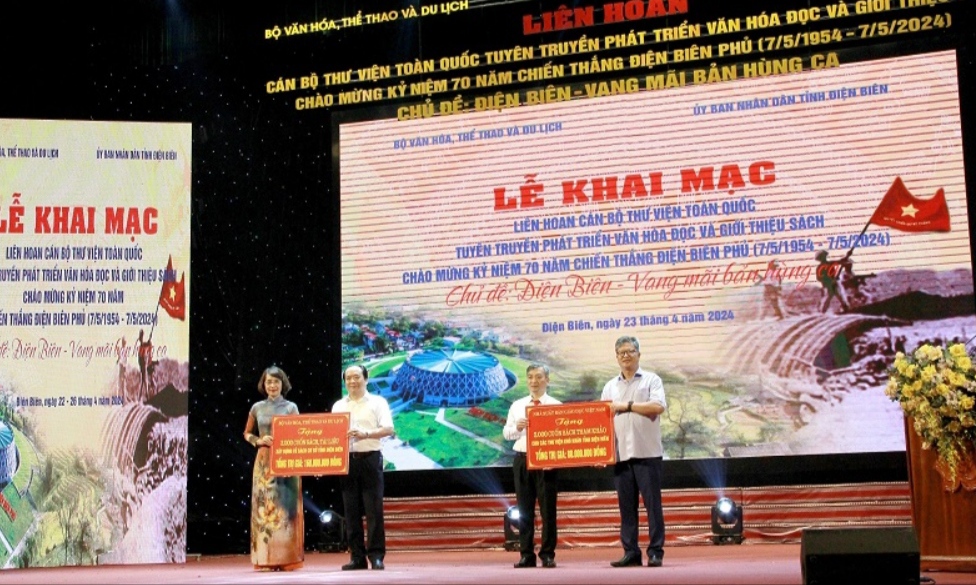 Cũng nhân dịp này, Ban Tổ chức đã huy động được những phần quà sách giá trị từ Thư viện Quân đội, các Nhà xuất bản Giáo dục, Kim Đồng, Thông tin và Truyền thông, Văn hóa Dân tộc, Công ty Cổ phần Tri thức Văn hóa sách Việt Nam, Công ty Cổ phần Văn hóa Huy Hoàng tặng hỗ trợ xây dựng thư viện cơ sở trên địa bàn tỉnh Điện Biên.
